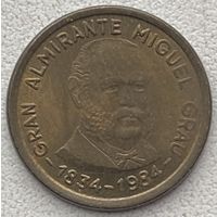 Перу. 20 сентаво 1935 - Памятник адмиралу Мигелю Грау. Отчеканен фондом по сбору средств на возведение памятника адмиралу Мигелю Грау, токен (пробник).