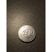 Малайзия. 10 сенов 1976. Брак, холостое соударение штемпелей при развороте + разворот (поворот). Торг.