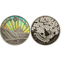Набор из 2-х монет: 20 рублей серебро+1 рубль медно-никель. Серия Травинка и воробей серии Белорусские народные сказки