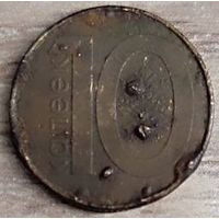 Республика Беларусь (РБ). 10 копеек 2009. Брак, выкрошка. (1). Торг.