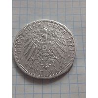 5 марок 1908 D. Бавария. Серебро 900. Оригинал.