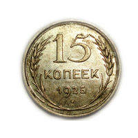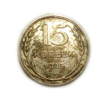 СССР. 15 копеек 1925. Брак, холостое соударение при развороте (повороте) штемпелей. Торг.