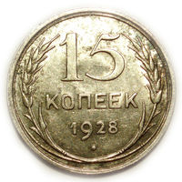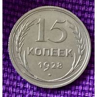 СССР. 15 копеек 1928, серебро. Брак, разворот (поворот) + холостое соударение штемпелей + смещение. Торг.