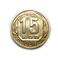15 копеек 1937 года СССР. Монета пореже! Достойный сохран!
