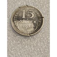 СССР. 15 копеек 1928, серебро. Брак, разворот (поворот). Торг.