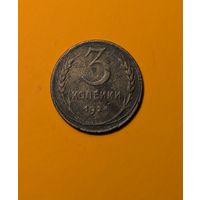 3 копейки (1924г.) Медь.Шикарная монета.В красивой патине..