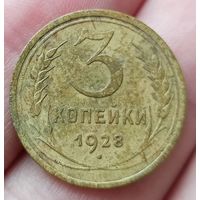 3 копейки 1927 года СССР. Редкая монета! Красивая родная патина!