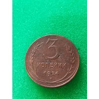 3 копейки (1924г.) Медь.Шикарная монета.В красивой патине..