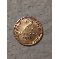 2 копейки 1948 года СССР. Красивая родная жёлто-золотистая патина!